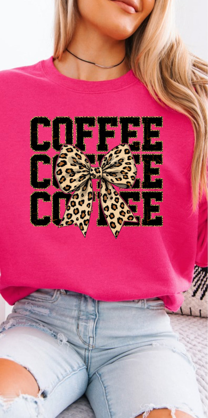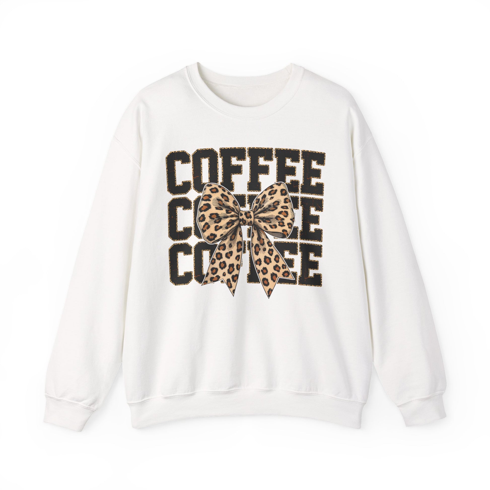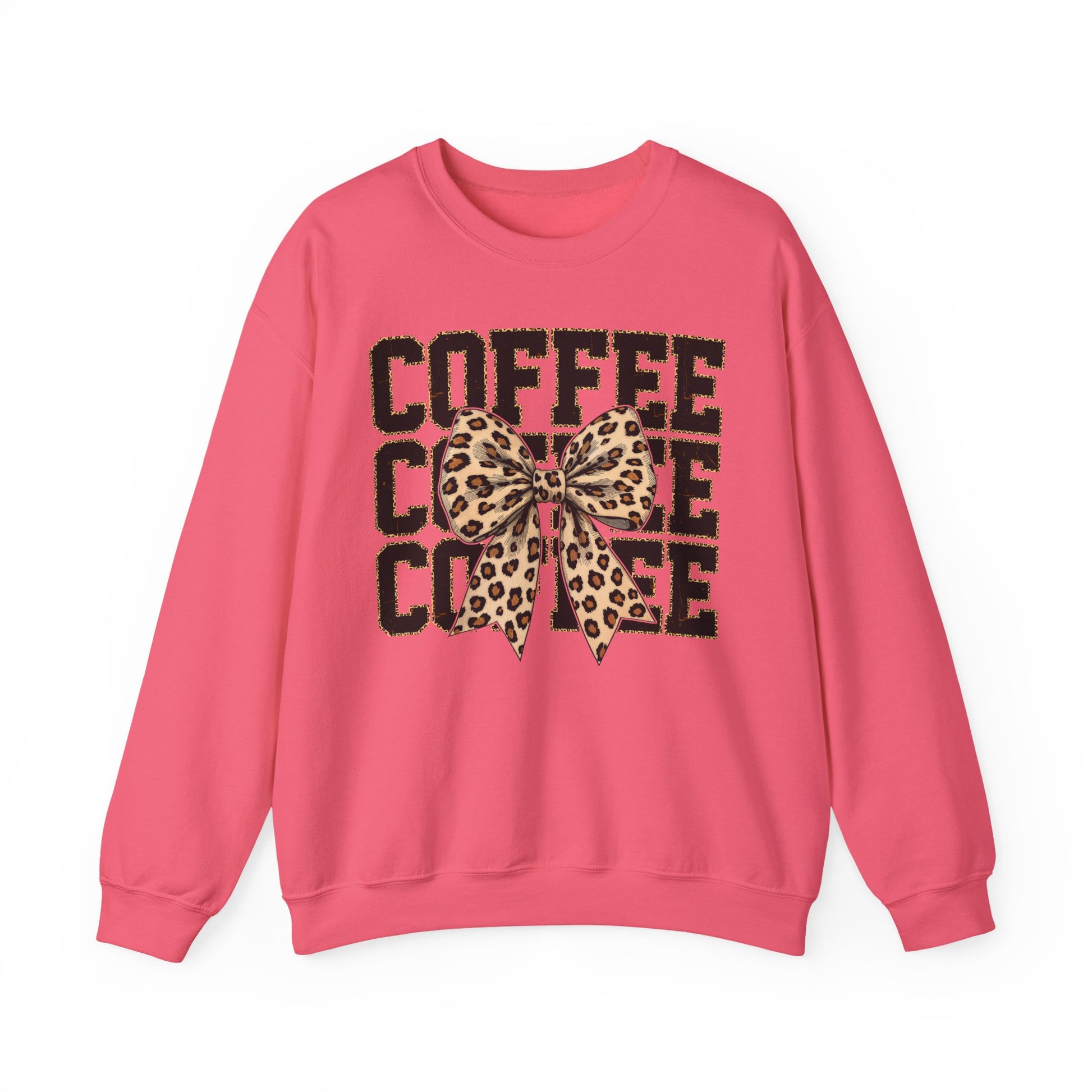 This cozy crewneck sweatshirt pairs everyday comfort with bold, playful style. The front features stacked “COFFEE” lettering behind a textured leopard-print bow, giving a wink of personality to morning routines and coffee runs. Built from a 50/50 cotton-poly blend with a medium-heavy weight, the sweatshirt feels substantial but soft, with double-needle stitching for long-lasting wear. The ribbed collar and cuffs keep shape through repeated washes, and the tear-away label eliminates itch. Wear it layered over a tee for cool commutes or stretched out on the couch during slow weekend mornings — it reads like a small celebration of slow sips, warm mugs, and confident style.
