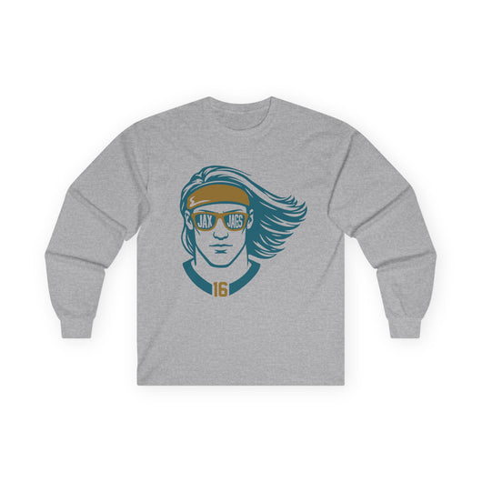 A lived-in long-sleeve tee that feels like a reliable teammate. The heavier, vintage-style cotton drapes with presence and warmth. The graphic—an illustrated, wind-swept player wearing a visor and shades—lands bold and slightly nostalgic on the chest, the muted palette letting the artwork speak without shouting. The tubular knit body and taped shoulders keep the silhouette clean and resilient through repeated wear. Wear it layered under a jacket for early-morning runs, on cool game nights, or lounging with friends while you trade plays and stories. It fits closer to classic proportions (runs a bit small), so size up if you like room to move.