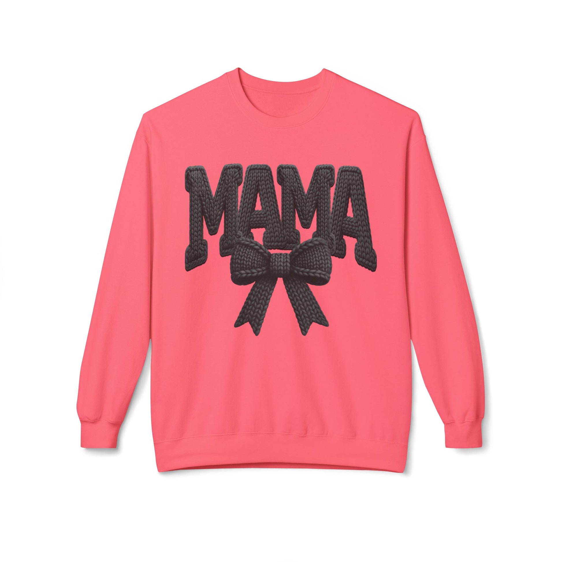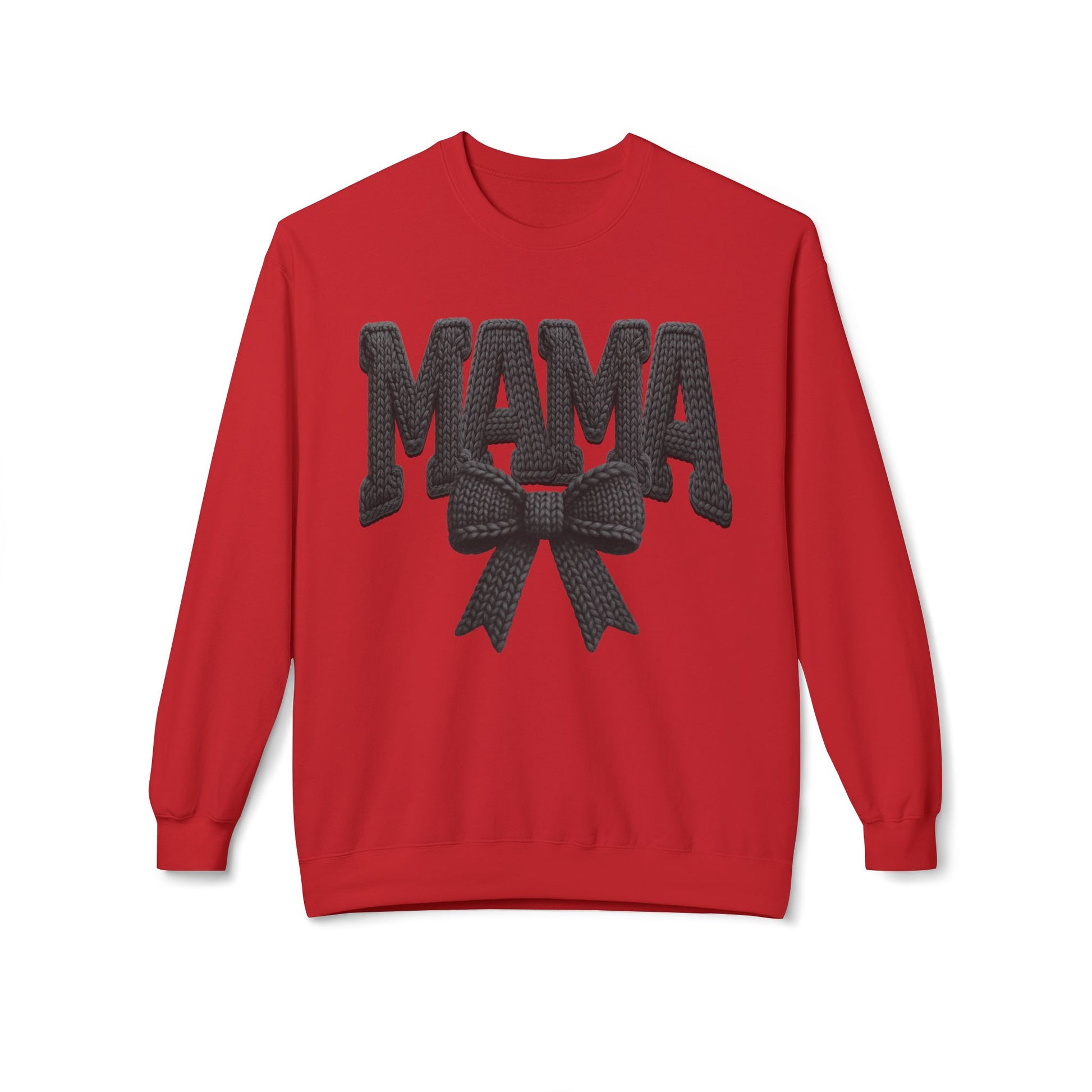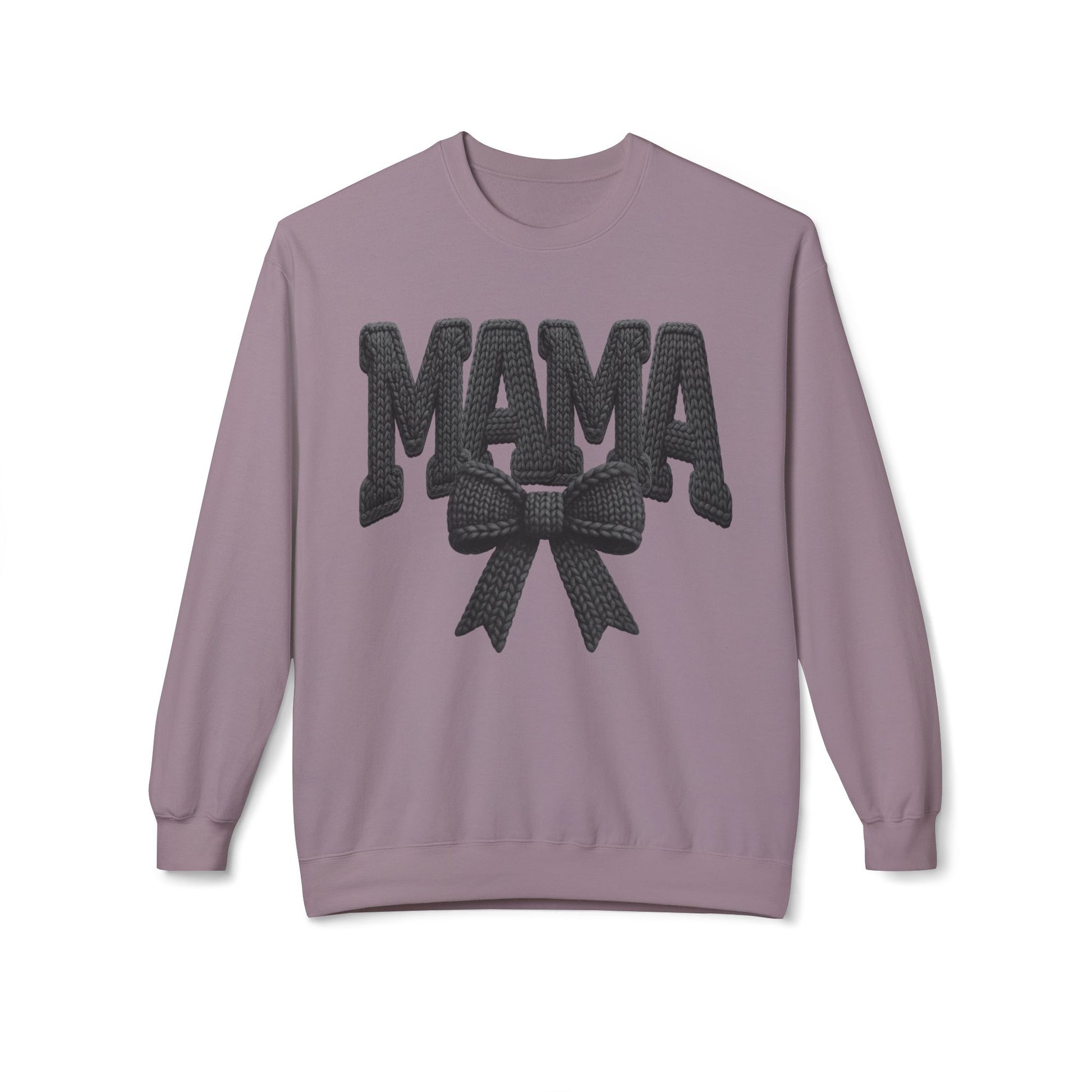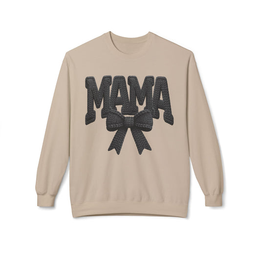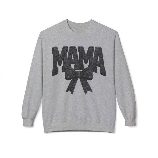 A warm, lived-in crewneck that reads like a quiet, confident hug. The soft midweight fleece holds its shape while the dropped shoulders and classic fit create an easy, relaxed silhouette you’ll reach for on slow mornings, school runs, or movie nights at home. Embroidered-style “MAMA” lettering with a textured bow brings a touch of vintage charm—bold but gentle—so it sits like a statement and a comfort at once. The tubular knit and tear-away label keep the inside smooth against skin. Wear it with leggings, jeans, or layered over a dress shirt when you want to feel put-together without trying too hard. Thoughtful weight, resilient ribbing, and a clean finish make this sweatshirt feel like something you’ll live in season after season.