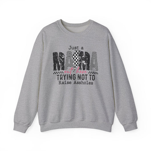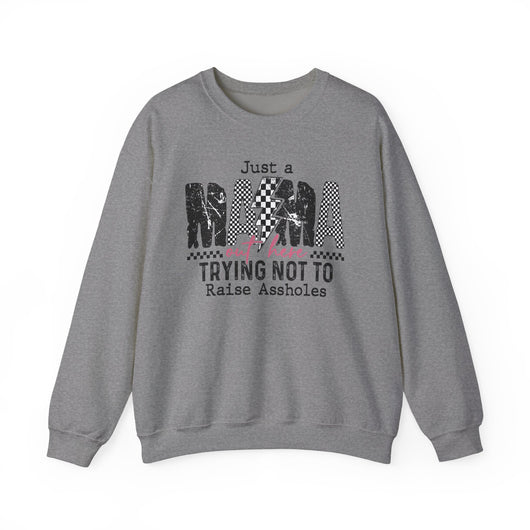 Soft, slightly oversized crewneck sweatshirt with a cheeky, hand-lettered front graphic that reads a candid line about motherhood. The relaxed classic fit and medium-heavy 50/50 cotton-poly blend give it a cozy, lived-in feel — warm enough for cool mornings, breathable for busy afternoons. Subtle ribbed collar and double-needle stitching keep the shape through repeat wear. Embroidery and DTF label options add handcrafted detail and professional finish. Wear it while running carpool, folding laundry, or stealing a quiet cup of coffee — it’s the kind of sweatshirt that feels like a wink from a friend.